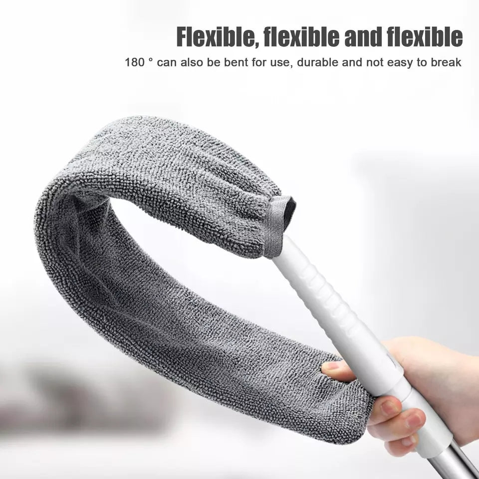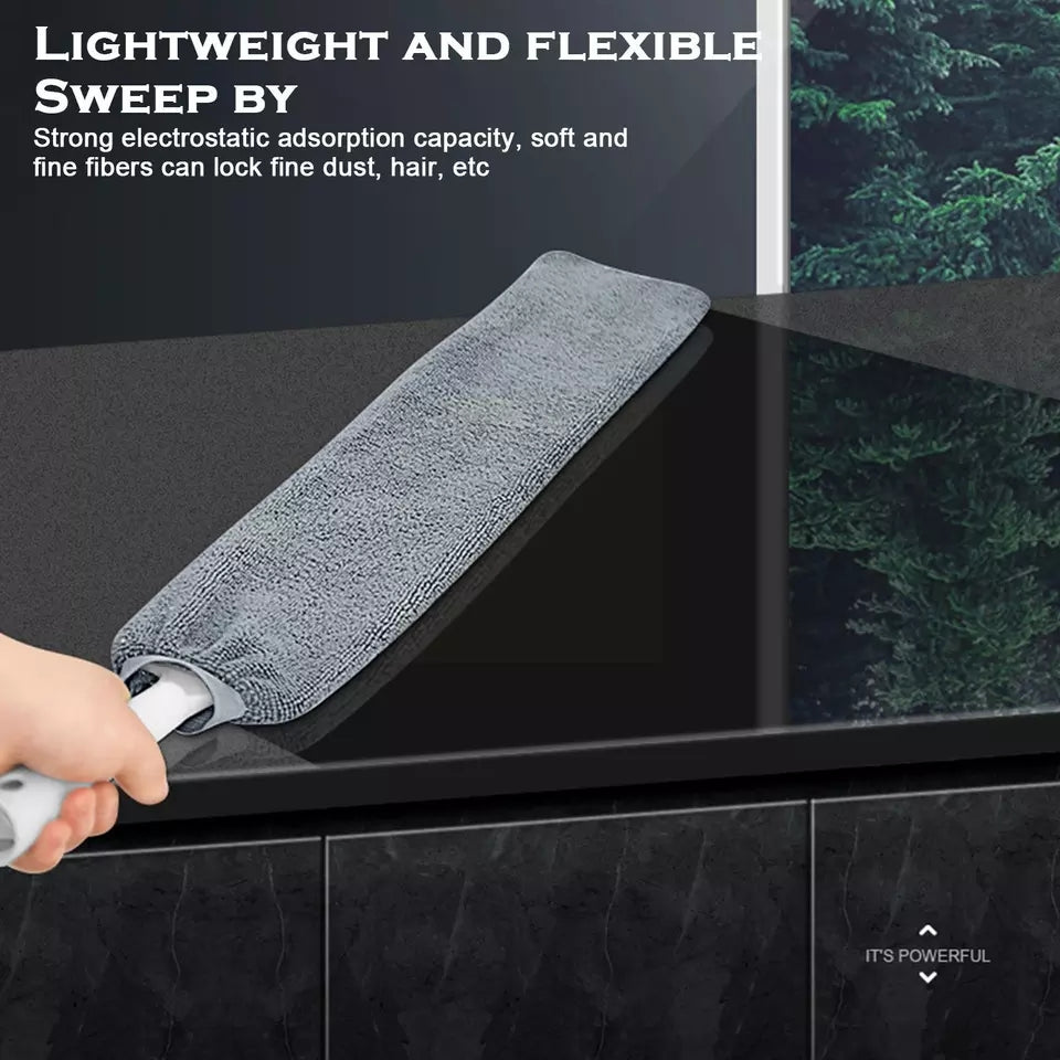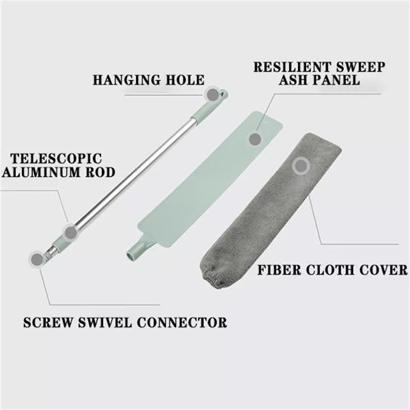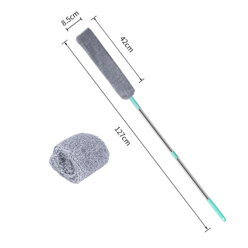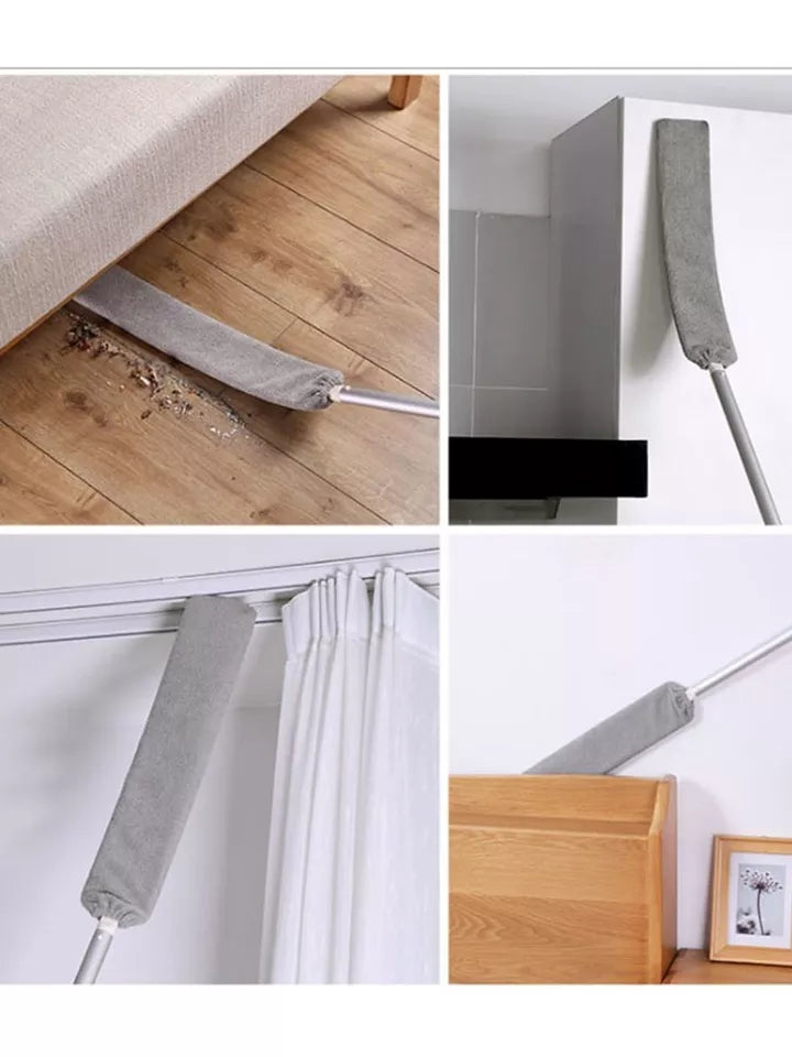 Denne anti-støv rengøringsaccessorie er en teleskopisk støvkost med langt håndtag, designet til nem rengøring af svært tilgængelige områder. Den er ideel til rengøring under senge, sofaer og andre møbler, hvor støv ofte samler sig. Fjerkost-designet hjælper med effektivt at opfange støv uden at sprede det.